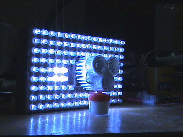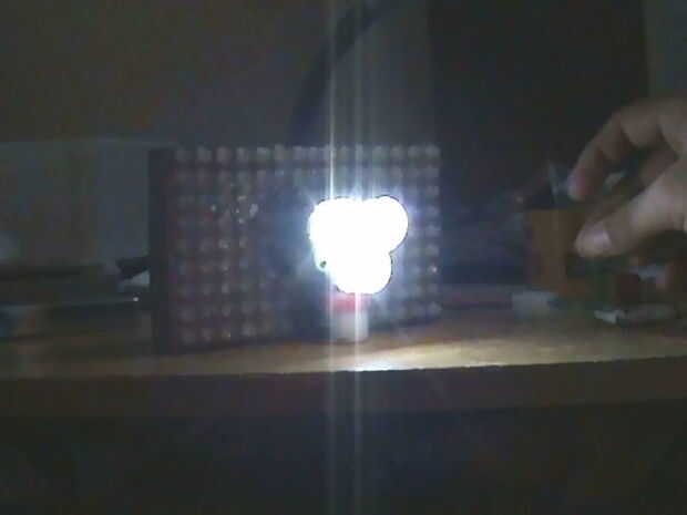 Este fue el primer gran proyecto que nunca hiceEl recinto del proyecto se hizo de un envase de yogurTodos los LED, los interruptores, y los cables en este proyecto fueron salvados de salvado de otros dispositivos electrónicosHabrá un video en el últi