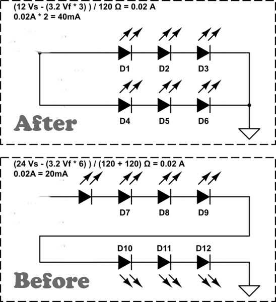 Convertir LED serie paralelo circuitos y quitar 1 LED