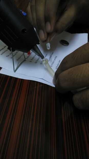 • Le puse cinta negra alrededor del tubo para ocultar la parte del pegamento.
