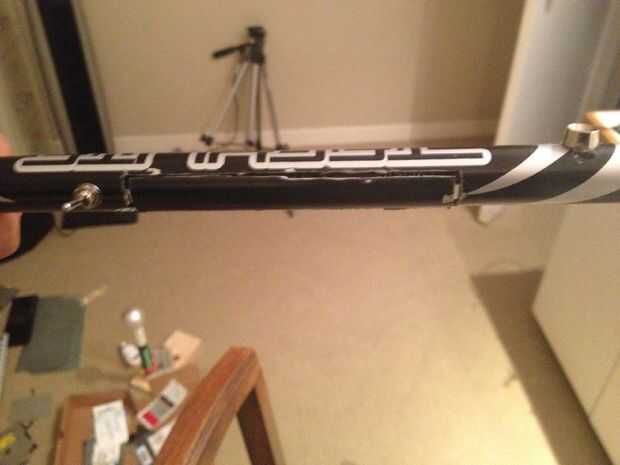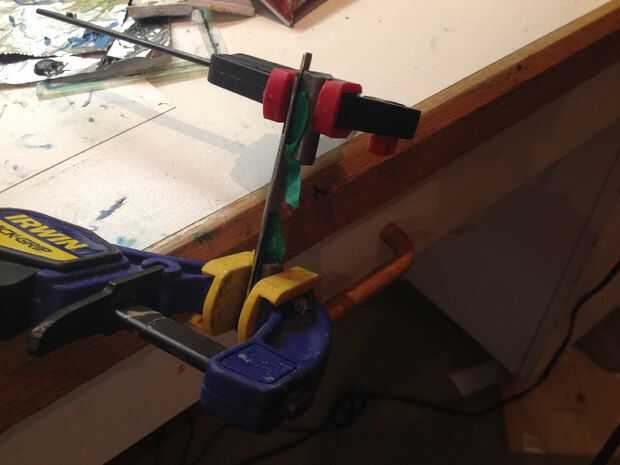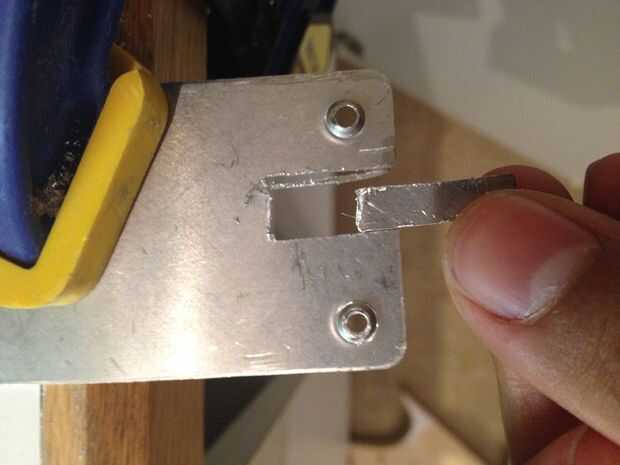 Después de que haya curado el pegamento, quite las abrazaderas y doblar cada diente recién adjunto ligeramente hacia abajo (hacia abajo como en señalar en el cuerpo de poste). Luego, corte una pequeña ranura en un extremo del compartimiento para pilas en el cuerpo del poste a. Juega con el tamaño para ver qué funciona mejor.
