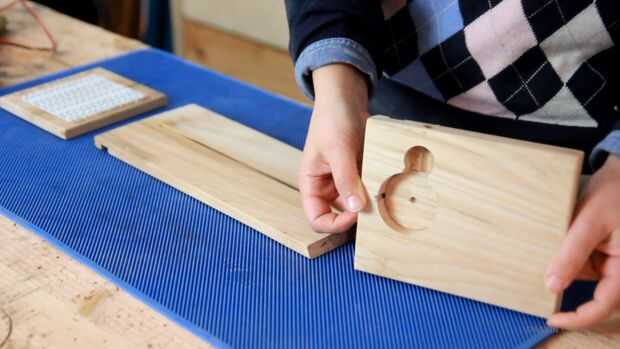 Ahora, voy a bajar un cable de la luz así que taladrar un agujero aquí así que puedo llegar a la parte trasera. Y prueba si cabe y que era un poco demasiado apretado, así que cambiar la broca. Y ahora el cable pasa por mucho mejor. El cable correrá por una ranura en la pieza posterior, por lo es lo ahora estoy cortando en la Sierra de mesa. Simplemente haciendo un surco muy superficial con unos pasos de la luz. Luego lijar un poco las piezas.