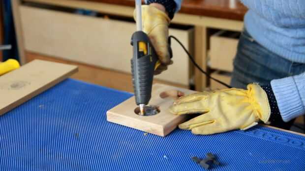 Ahora, para dar la base de peso un poco, decidí hacer otro agujero aquí. Y tengo algo de plomo. Soy sólo esto pegado en lugar. Usé esto porque ya tenía algo de plomo en mano, sin embargo definitivamente podría utilizar municiones o cualquier otro tipo de peso sólo para asegurarse de que la lámpara es un poco más estable. Y entonces yo estoy apenas cubriendo todo con pegamento caliente.