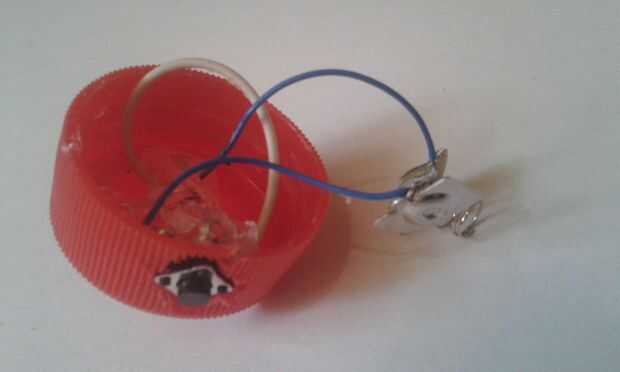 Cómo construir un Mini LED linternaPara construir una mini linterna de LED necesita:-un trozo pequeño de cuerda-2 palitos-claro bola (dividida en dos)-Luz LED (cualquier color)-resistencia-2 alambres (con los extremos pelados de ambos lados)-interrup