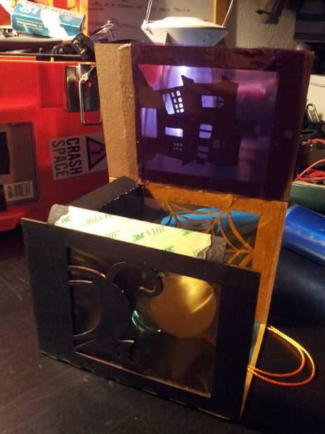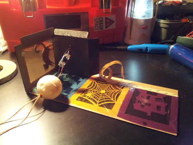 Doble su lámpara a lo largo de la línea punteada y comenzar a colocar la base. (Asegúrese de que se alinee correctamente, por lo que el interruptor termina junto a la casa!)