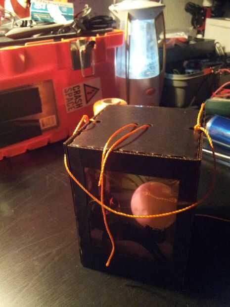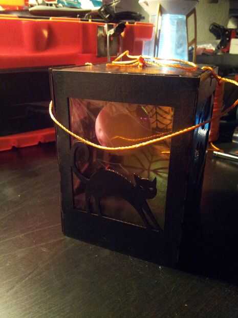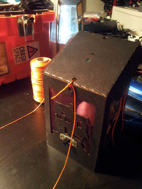 Continuación, ejecute la secuencia de su linterna a través de los agujeros mediados. Antes de que ata las cuerdas de la luna, recorren el final de la cadena de mango los últimos agujeros. Con la tapa cerrada y el mango Unido, tire de la luna en su posición, ate la cadena y recorte todos los extremos sueltos.