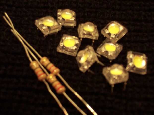 • 9 x blanco tipo cuadrado especial multi chip LED de Muy alto brillo (yo usé 50.000 MCD 140 * 100mA) te recomiendo estas. Son lo que utilicé. $18 por 30.