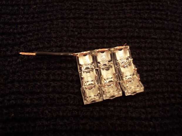 Soldar un trozo de alambre para la tierra conectando todos los negativos de los LEDs