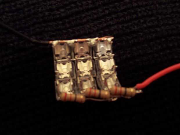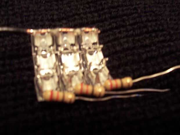 Al final de la curva de la resistencia para mantener el led la resistencia como cerca de lo LED como sea posible de la soldadura.