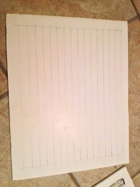 Decidir qué tamaño usted desea que su luz y marcar la cartulina con su favorito, herramienta de la marca. Voy a la base de esto el tamaño hice mi luz así que hice mi tablero 14 "x 11 1/2". Luego cortar la cartulina con una navaja tenga cuidado de no cortar a su auto. Después de tener el tablero cortado a medida 1" hacer una línea paralela con la parte 14" entonces usted espacio líneas de 5/8" aparte. Lado de las líneas de drenaje paralelas con 12" 1" pulgada de ese lado en ambos lados. Estas líneas son para mantener las luces de la franja recta.