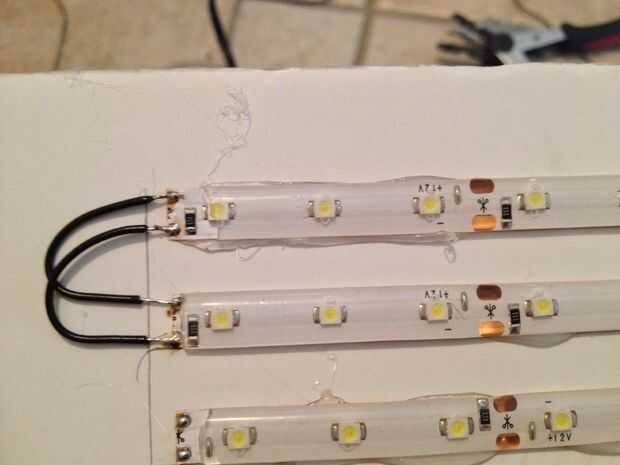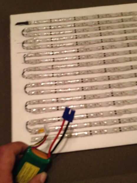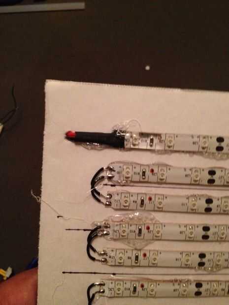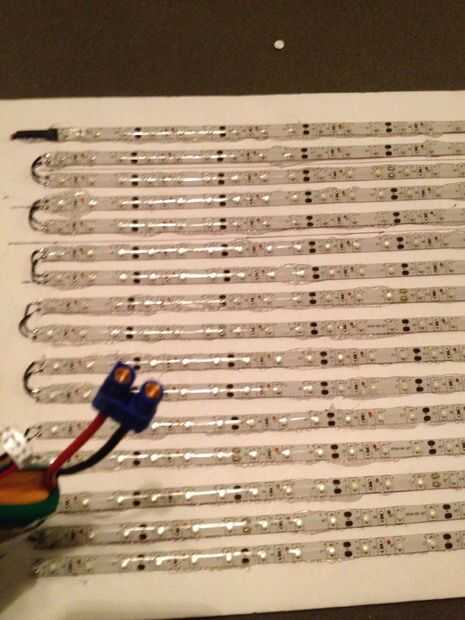 Por lo que ahora necesita soldado los cables a las luces. Cable que mis luces en serie hasta trataron de hacer mitad y mitad en serie en paralelo a ver si las luces tiene más brillantes pero hizo una diferencia así que fui en serie. Dibujé un cuadro para que puedas obtener la idea si tu no estás seguro qué serie. En un extremo que se necesita dos cables para conexión batería te pueden poner lo que tipo de conector que desea no tengo uno el tiempo, pero planeo poner un conector que se enchufa en una batería lipo rc