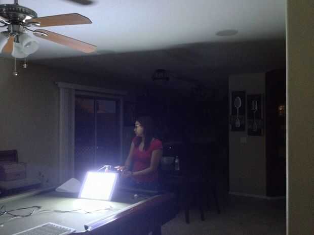 quería crear una luz dominante de algunos suministros de ferretería simple para aboout $100.  La luz utiliza una cacerola de aluminio, probarlos y ocho 100 vatios equivalente compacto CFL fluorescentes montados a él.  Cuando se enciende la luz crea i
