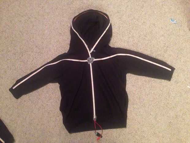 1. Coloque los brazos en su lugar sobre la sudadera con capucha