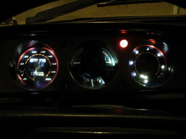 este es el tacómetro de LED que hice. Calibrado como sigue (cada 3 LEDs = 1000 RPM)He impreso un papel fotográfico para el tablero de instrumentosInstructables aquí