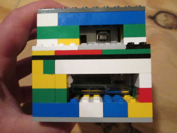 construido un Lego frambuesa Pi del caso según las instrucciones aquí Tuve que improvisar pero tuve una gran caja de Legos de mis hijos a mi disposición y mina ahora tiene un ornamento de capilla fresca. Me tomó alrededor de una hora al bulid, y la m