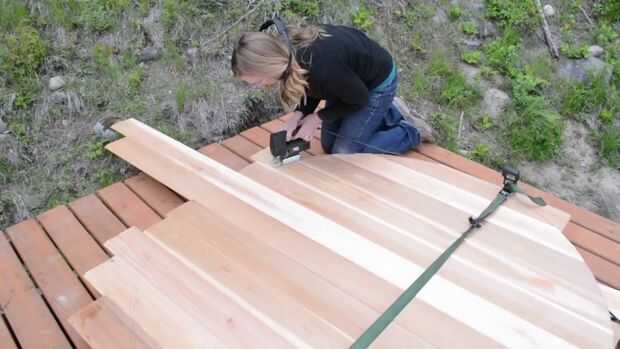 Construimos la planta de cedro que estaba disponible para nosotros que era cedro de lengüeta y ranura de ranura en v de 1 x 6. No recomendamos ranura en v si tienes la opción. Muchos jacuzzis cedro comercial use stock de 2 x 6 que puede ser más ideal si está disponible para usted.