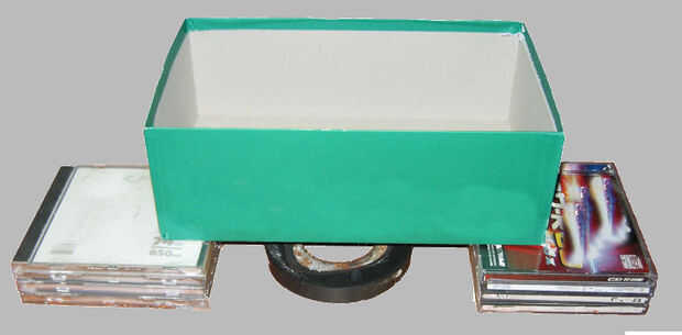 d) construir un par de pequeñas torres con mangas de 3 o 4 DVDs cada uno. Las torres deben ser 40mm de alto;