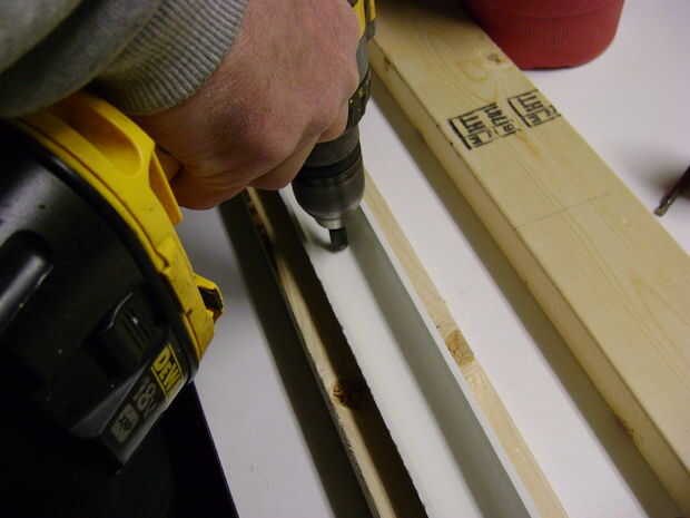 Primero alinee la madera con sus ruedas para que son uniforme y marcan en 3 puntos donde usted quiere poner las ruedas en cada pedazo de madera, añadir 6 pulgadas a cada lado de las personas y que marca. No atornille dentro de esas marcas ya es donde van las ruedas para rodar. Coloque el PVC sobre la madera en el centro de la madera en posición horizontal. Avellanado si usted puede atornillar luego. Pongo en 6 tornillos en cada pedazo de madera y es extremadamente robusto.