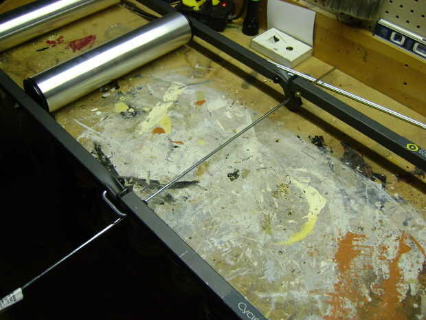 Esto es bastante simple. Cualquiera sea el tamaño de su barra de metal, es la broca de tamaño que va a utilizar. Mis rodillos tenían 6 piernas que perforé en, quizás tenga que improvisar si ustedes son diferentes. Sé de algunos con 4 patas, me gustaría decir que dondequiera que los rodillos hacen contacto con el suelo, poner un árbol. Sólo las perforaciones para la barra en dos o tres puntos en ambos lados, asegurándose que los orificios opuestos que uno al otro están en la misma posición exacta, por lo que el árbol no esté torcido.