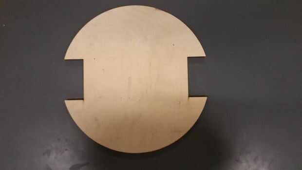 Utilizamos Adobe Illustrator para el diseño de una plataforma que serviría como el cuerpo principal del mecanismo interno. Como se puede ver, tiene 2 cortes rectangulares a cada lado para montar las ruedas. Luego utilizamos un cortador del laser (grabador Trotec) para cortar el diseño. Tenga en cuenta que si no tienes acceso a un cortador del laser, una sierra de calar funcionará muy bien.