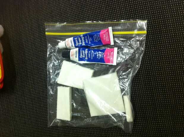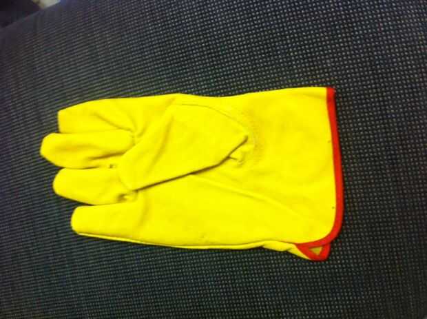Primero corta el Tajo en rectángulos. Cortar un pedazo grande para el disco principal de Palma, una pequeña plaza para dependiendo de lo que usted quiere cortar cuatro trozos pequeños para los dedos o una pieza larga que une a todos los dedos y el pulgar. Suavizar los bordes de los discos con cualquier papel de lija o simplemente los bordes de la tierra en una pista de hormigón. Luego se mezclan partes iguales de A y B de Epoxy y repartidas grueso en la parte inferior de la región. Coloque los discos pegados al guante y aplicar el peso del guante y dejar para secar. Si los discos no completamente pegan al guante el aplicar más pegamento alrededor de los bordes para sellar los discos.