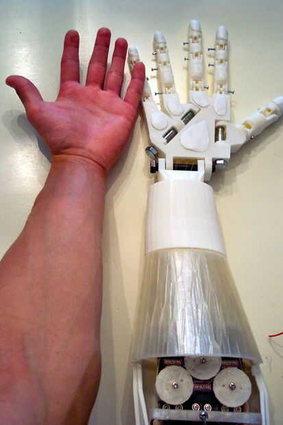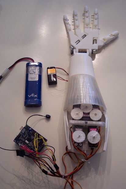 ¿Vivir con solo una mano, o sentirte que dos solo no es suficiente? Pozo ahora usted puede hacer otro! Este proyecto combina dos cosas muy interesantes: un escudo de reconocimiento de voz de arduino y un 3D de código abierto impresión el proyecto de robótica llamado InMoov. Básicamente lo que he hecho es modificar el InMoov mano/antebrazo para ser usable como una prótesis (o accesorio adicional) y un escudo VR (reconocimiento de voz) para recibir comandos verbales y luego realizar los movimientos correspondientes con la mano. La ventaja del control por voz es que no requiere de los músculos y es más flexible a condiciones físicas diferentes (también manos libres!). Mi programa incluye 15 general mano gestos y acciones para la vida cotidiana! Cuando yo buscaba en brazos mioeléctricos guardó pensando que la funcionalidad no valía la pena los miles de dólares. Mientras que mina no es tan elegante como algunos 's notable lo que se puede crear con las impresoras 3D de escritorio, un arduino y servos! creo que la mejor parte es la personalización: las partes impresas se pueden escalar para hacer una prótesis para cualquier persona. Aunque este proyecto puede parecer intimidante, todo el tiempo (si usted trabaja en la electrónica mientras que piezas son la impresión) es cerca de 14 horas! Verlo en acción! (Si incrustar no trabajo trata el enlace aquí)