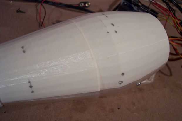 A continuación necesitaremos montar los componentes (arduino, 9V, batería del motor) en la parte exterior del brazo para que va a ser totalmente móvil. Desafortunadamente en el diseño de antebrazo InMoov hay suficiente espacio para montar todas estas cosas (a menos que se construye la parte del bicep) así que vamos a utilizar alambre de lazos o ataduras de cremallera a pegue todos en el exterior. Sujete que los componentes hasta la parte posterior del brazo y con un marcador de hacen puntos. Perfore estos puntos para que puedan alimentar a través de los lazos de alambre, código postal. Una vez perforados adelante y montar los componentes. Aunque no tan bonito, es funcional y brinda fácil acceso a los componentes vitales para poder cambiar las baterías o cables según sea necesario.