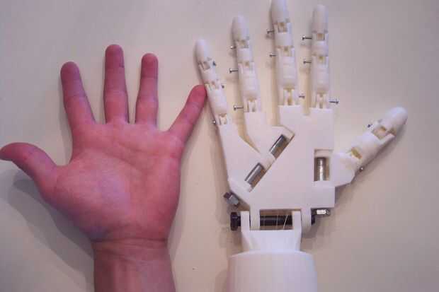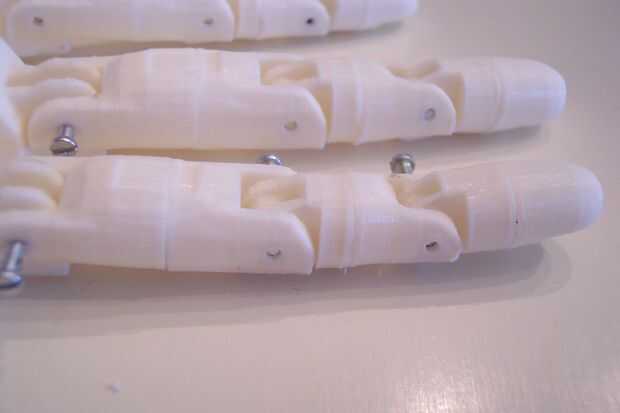 1. Ensamble las juntas. Tomar los tornillos varios para la mano y utilizarlos para montar. Puede que necesite utilizar un taladro para ampliar o corregir orificios impresos para las articulaciones del dedo y piezas de mano. Use los tornillos más grandes para unir las dos piezas para los dedos, el pulgar y la muñeca. Asegúrese de que las piezas conectadas tornillos pueden doblar fácilmente, lijado de algunas puede ser necesario para un ajuste suave. Todas las piezas deben ser capaces de flex con poca resistencia.