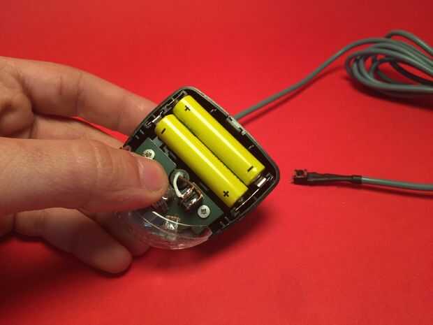 Así que he insertado el cable de doble núcleo, y había soldado los dos alambres internos a los contactos del botón ON/OFF.