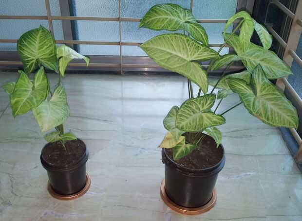 Lo y he aquí!, aquí está tu nueva amiguita! Tomar buen cuidado de él. Decidí plantar Syngoniums en estas macetas. Son fáciles de cuidar y toleran condiciones de poca luz.