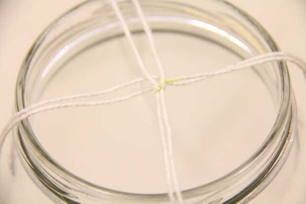 Tomar el anillo fuera de su tarro de masón (o la tapa entera si lo prefieres) y centro de los nudos en la formación de un cruce. Entonces reemplazar el anillo o tapa.