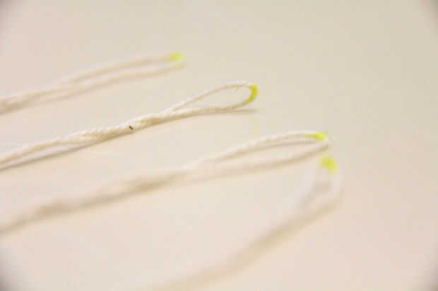 Tomar cada par y hacer un nudo doble en el centro, me gustaria marcar el centro para hacerlo más fácil al que atar las piezas uno al otro.