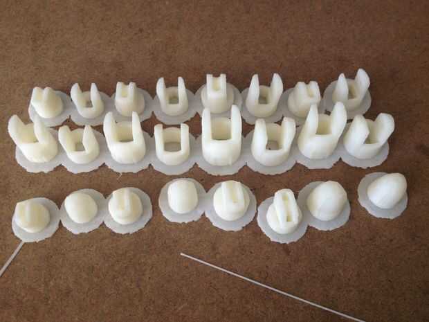 En total, las partes toman unos 13-15 horas para imprimir dependiendo de la resolución de impresión que utilice. Usé un MakerBot Replicator 2 X - recomiendo imprimir las partes del dedo en resolución estándar o alta para evitar roces no deseados. También incluí las balsas con todas las partes, como hacen las impresiones más coherentes, especialmente cuando se utilizan plástico ABS.