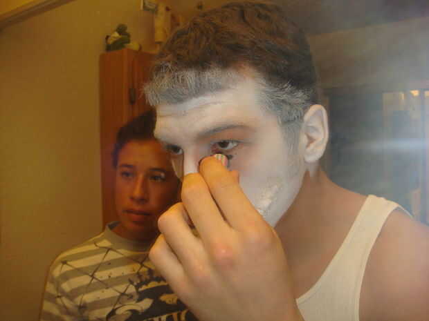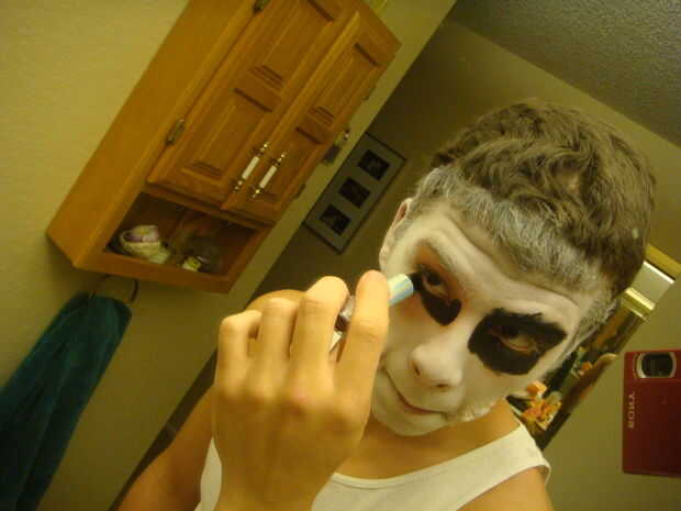 Ahora después de eso refinación de instintos puede Agregar pliegues y sombras con la máscara de pestañas (yo escogí hacerlo alrededor de mi boca y un poco cerca de mi ceja). Para la sombra del faux boca ayuda si tú sonríes y ligeramente pero no totalmente traza la línea por su piel plegable, pero en cuanto a los demás puede arrugarse la cara y poner em dondequiera que usted quiere pero no va demasiado por la borda o sólo veremos viejo.
