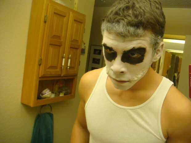 Ahora el tedioso detalle toma el cepillo del rimel y cualquier lugar que un toque con el lápiz labial refinar la forma del instinto con la máscara de pestañas. Tómese su tiempo con esto porque las rayas al azar rimel negro va a arruinar la imagen del joker.