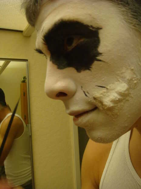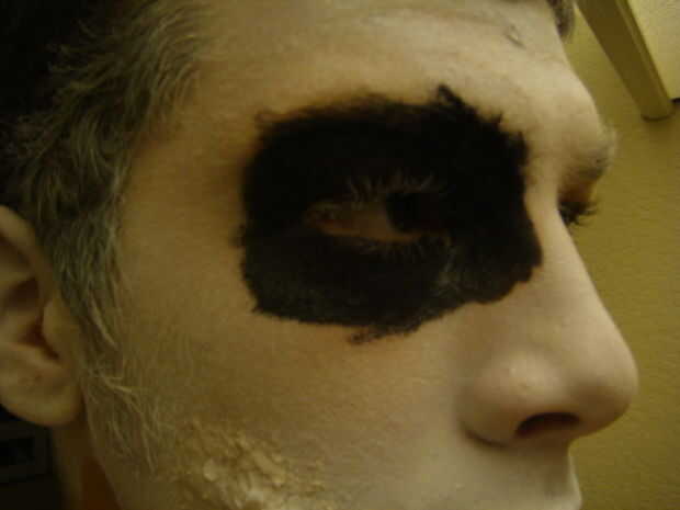 Empezar con el relleno en la cavidad del ojo [siempre comience hacia adentro y su forma de trabajo hacia fuera] con el lápiz labial negro (arrastrarse un poco más en el puente de la nariz pero no lo suficiente en el hider/distorsionar su mirada desde una vista frontal) y no tenga miedo de conseguir algo en tu ceja sale bastante fácil