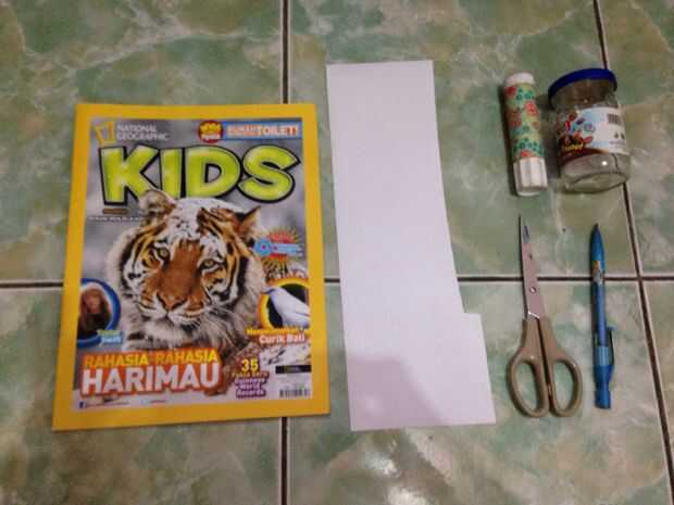 Todo lo que necesita cambio de imagen este tarro es una revista (recomienda niños revista, porque tienen muchos cuadros coloridos), un papel adhesivo, pegamento, un tarro, un lápiz o marcador y tijeras.