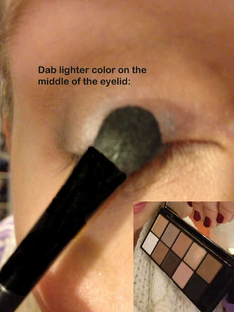 Ahora toma un color más claro y lenguado en el centro de tu párpado. Aplicar con movimientos de superficies y asegúrese de que se mezcla un poco. Este color más claro destaca su ojo y refleja la luz, dando su ojo más a fondo.