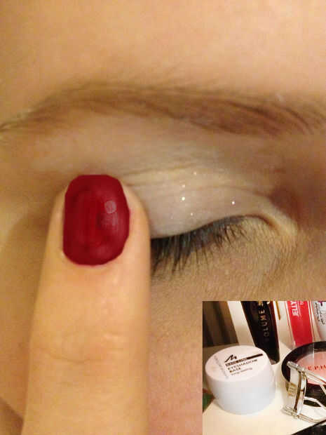Ahora hemos llegado al maquillaje de los ojos reales que estabas buscando! Antes de empezar, vamos a aplicar una base de sombra de ojos. Esto es importante, ya que evita la sombra de ojos de salir o arrugar.