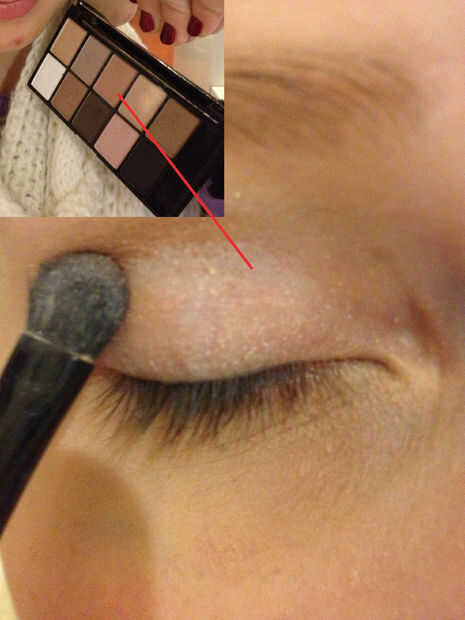En primer lugar, usted va a tomar un ligero color marrón/beige (NYX 10 Color paleta de sombra de ojos) y aplicar el color de tu párpado utilizando una sombra de ojos cepillo de mezcla. Asegúrese de no usar demasiado y mezclarlo hacia afuera!