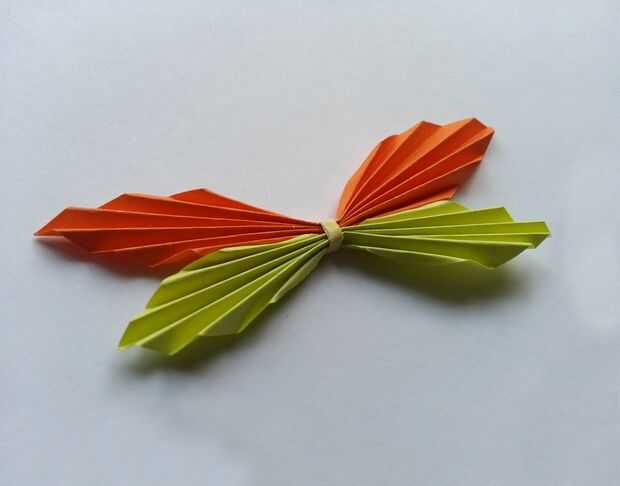 Unir las dos alas, apretar en el centro. Aplicar el pegamento en el papel delgado y envolver cuidadosamente alrededor del centro de las alas.