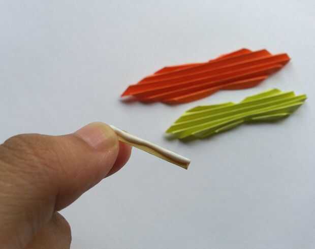 Corte 4 pedazos de papeles como se muestra en la imagen. 2 para las antenas, 1 para envolver las dos alas juntas y 1 para el cuerpo (respectivamente).