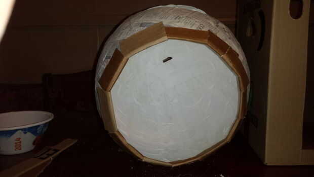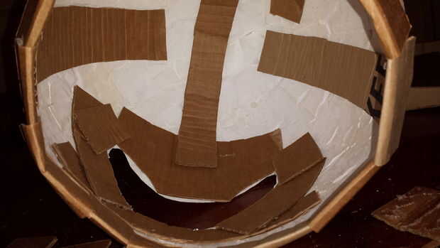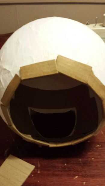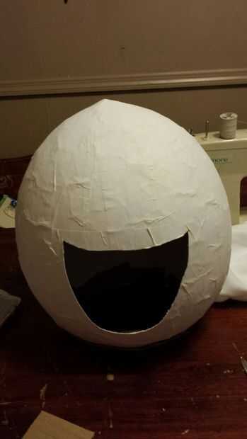 Disfraces de Halloween 2011 de mi hijo. Construido a partir de un casco, papel maché, chaqueta de piel y bolas de madera para los ojos.