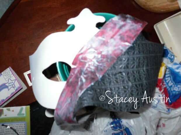 Presione el papel texturado negro sobre la parte inferior derecha de la máscara sobre el orificio del ojo y todo.