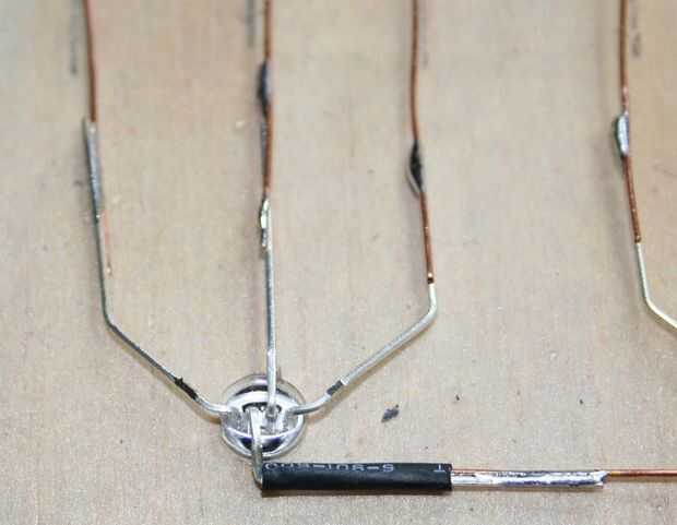 Con las filas de soldados, dobló entonces los pernos del ánodo, dejando, una separación de 3 entre el perno de ánodo y la capa más baja de cátodos. Corte y me caben algunos tubo del encogimiento en la curva de modo que hubo cierta protección contra cortocircuitos.