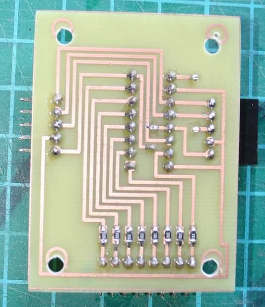 Los tableros para los cátodos son los mismos que el uno al otro, la única variación es que la board rojo cátodo utiliza resistencias de 330 ohmios, mientras que las placas de cátodo verde/azul utilizan resistencias de 220 ohmios. Esta diferencia en rojo frente a verde y azul es como resultado de la diferencia en la tensión del elemento rojo en comparación con los elementos verdes y azules. Si todos tuvieran la misma resistencia de valor, la Junta sería fuertemente roja parciales, por lo que esto se equilibra cambiando la resistencia utilizada.