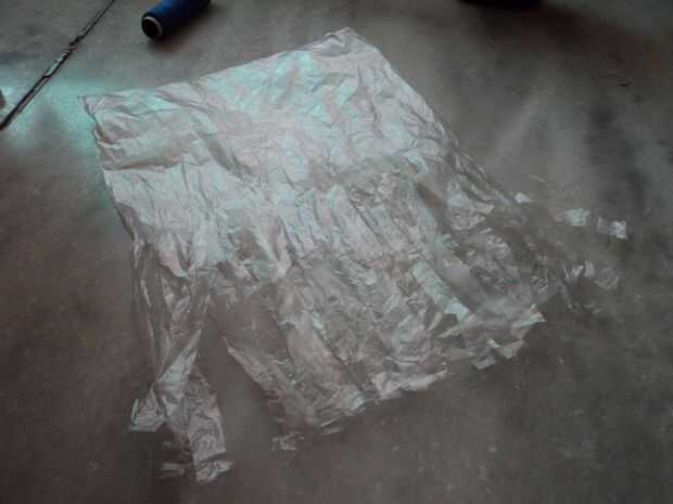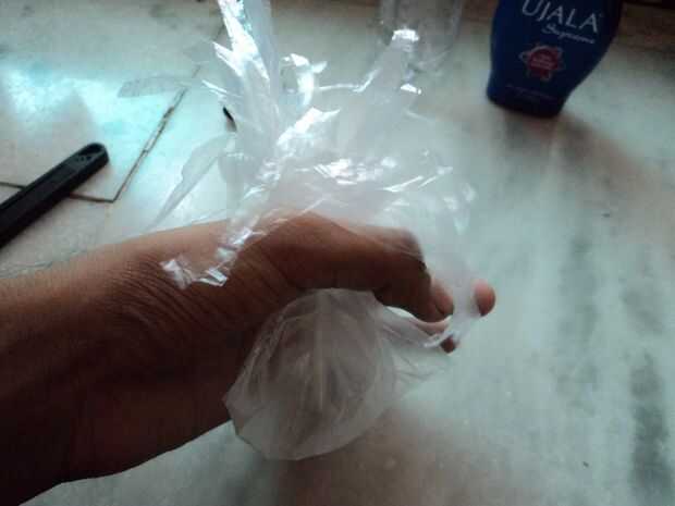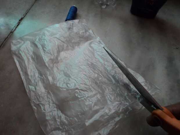 Tome una bolsa de plástico y luego desde su parte inferior parte abierta, corte estrecho y largo las tiras utilizando un par de tijeras y cubrir el fondo entero corte tiras. Asegúrese de que el otro extremo de la bolsa no debe tener ningún agujero o cualquier tipo de fuga.