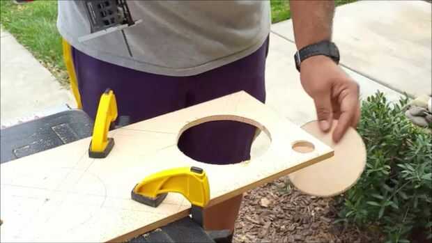 Tengo suerte con mis tweeters porque todo lo que tenía que hacer el recorte era utilizar un broca Forstner de 1 1/4" y el ajuste perfecto. Para los woofers, yo utilizó una 3/8 broca para hacer un agujero piloto suficientemente grande para que la hoja de mi rompecabezas para ajustar. Luego procedí a cortar muy lentamente haciendo que para cortar el círculo dibujado tan preciso como sea posible.