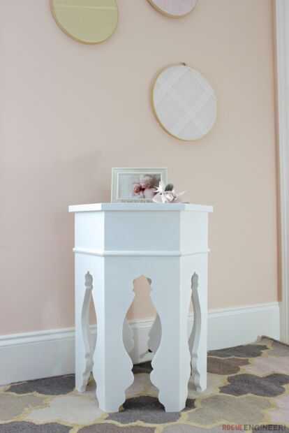 Cuando estábamos exponiendo nuestro vivero para Madison, una tabla lateral de la vela era una necesidad, y desde la mesa de Conner hicimos antes ahora está siendo utilizado como mesita de noche de Brayden, tuvimos que sacar algo nuevo. Ya sea libros o tomar una copa, una mesa es sin duda una pieza funcional de mobiliario. Así que Jamie fue ir de compras, ventana de compras que es, y ella cayó en amor con esta Mesa de centro marroquí de Pottery Barn Kids. El problema es que lo dang es $150. Dije, "no en mi casa!". Así que llegué a trabajar en un diseño. Un fin de semana y media hoja de madera contrachapada más tarde y allí lo tienen. El $40 mesa marroquí del ingeniero de Rogue. Auge va la dinamita! Oh sí y ese loco corta, no preocuparse, he incluido una plantilla que hace loco fácil. Disfrutar de estos planes gratis y no te olvides de pin en Pinterest.