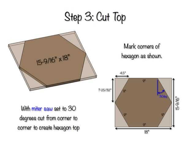 Utilizando el conjunto de la Sierra de ingletes a 30 grados corte de esquina a esquina para crear una tapa del hexágono.