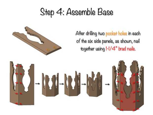 Después de la perforación de dos pockholes en cada panel lateral es hora de armar la base.